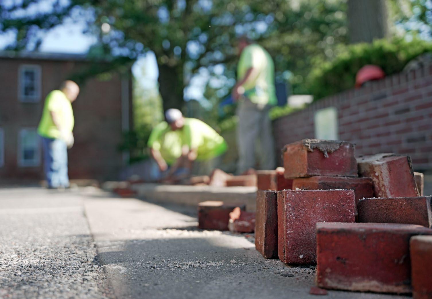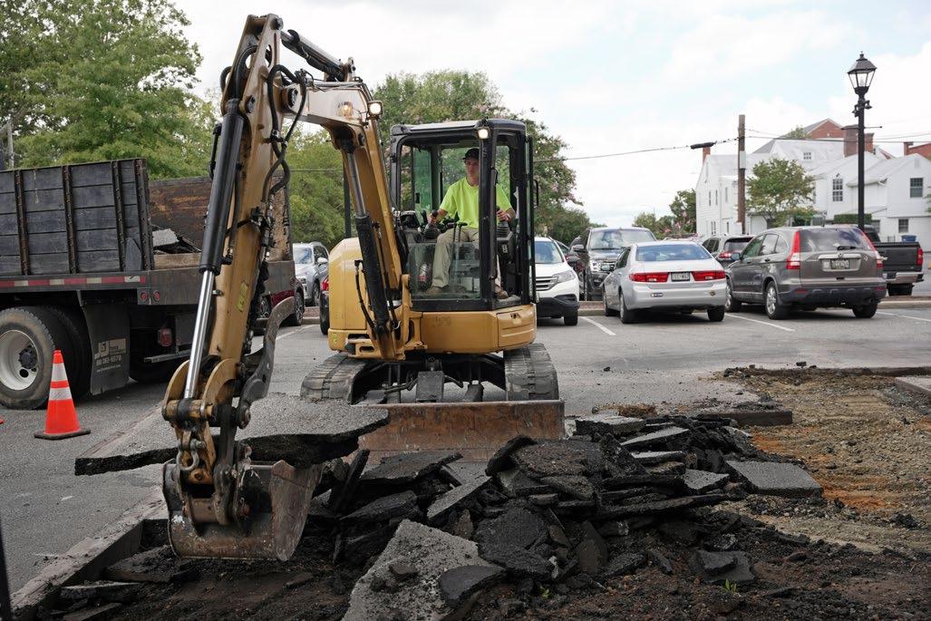 Our team worked to carefully remove the old bricks (which will be reused) from the sidewalk, remove the temporary ADA ramp, and to breakup and remove the asphalt and concrete in the affected areas.