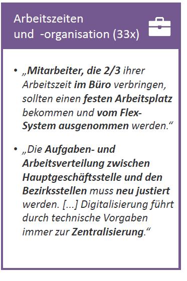 „Im Antwortverhalten traten keine signifikanten Unterschiede zwischen den Mitarbeitenden in der Hauptgeschäftsstelle oder den Bezirksstellen auf.“