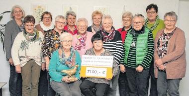 F r a u e n a u s d e r G r a f s c h a f t u n d d e m E m s l a n d v o n H a n d g e s t r i c k t u n d v e r k a u f t D i e b e n ö t i g t e W o l l e w i r d v o m S t r i c k c l u b z e n t r a l e i n g e k a u f t u n d v e r w a l t e t , s o d a s s f ü r d i e S t r i c k e r i n n e n k e i n e K o s t e n e n t s t e h e n U m e i n P a a r S oc k e n v o n H a n d z u s t r i c k e n u n d z u v e r k a u f e n , f a l l e n u ng e f ä h r z e h n A r b e i t s s t u n d e n a n I m l e t z t e n J a h r w u r d e d i es e e h r e n a m t l i c h e A r b e i t d u r c h d i e Ü b e r r e i c h u n g d e r