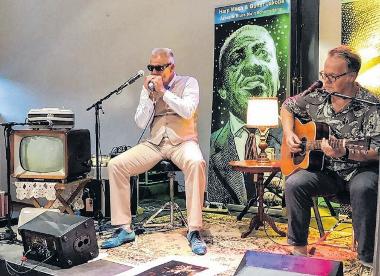 D i e B l u e s m u s i k e r „ H a r p M i t c h & G u i t a r J a k o b s “ s i n d a m S o n na b e n d , 2 5 F e b r u a r , z u
