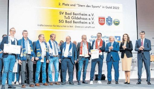 B E R L I N D i e d r e i G r a f s c h a f t e r S p o r t v e r e i n e h a b e n g e m e i ns a m d e n 2 P l a t z b e i m B u nd e s f i n a l e d e s W e t t b e w e r b s S t e r n e d e s S p o r t s b e l e g t M i t i h r e r g e m e i n s c h a f t l i c h e n I n i t i a t i v e „ K r ä f t e b ü n d e l n f ü r M e n s c h e n i n N o t – E h r e n a m t s c h a f f t v i e l “ k o n n t e n s i e d i e E x p e r t e n j u r y v o n s i c h ü b e rz e u g e n u n d d ü r f e n s i c h ü b e r d e n „ S t e r n d e s S p o r t s “ i n G o l d 2 0 2 2 f r e u e n B e g l e i t e t w u r d e d a s V e re i n s b ü n d n i s v o n d e r G r a fs c h a f t e r V o l k s b a n k D i e P r e i sv e r l e i h u n g f a n d a m M o n t a g , 2 3 J a n u a r , i n B e r l i n i m B e is e i n v o n B u n d e s p r ä s i d e n t F r a n k - W a l t e r S t e i n m e i e r s t a t t D a s E n g a g e m e n t d e r d r e i G r a f s c h a f t e r V e r e i n e w u r d e m i t e i n e m P r e i s g e l d i n H ö h e v o n 7 5 0 0 E u r o g e w ü rd i g t „ H e r z l i c h e n G l ü c k w u n s c h ! D a s i s t e i n s e n s a t i o n e l l e r E rf o l g , a u f d e n u n s e r e d r e i S p o r t v e r e i n e s e h r s t o l z s e i n k ö n n e n S i e s i n d e i n P a r a d eb e i s p i e l d a f ü r , d a s s S p o r t v e re i n e a u c h ü b e r d a s e i g e n t l i c h e s p o r t l i c h e A n g e b o t h i n a u s V e r a n t w o r t u n g ü b e r n e h m e n u n d P r o j e k t e s t e m m e n , d i e n a c h h a l t i g w i r k e n D i e E hr e n a m t l i c h e n h a b e n d a s H e r z a m r e c h t e n F l e c k u n d u n t e rs t ü t z e n M e n s c h e n i n N o t s i -