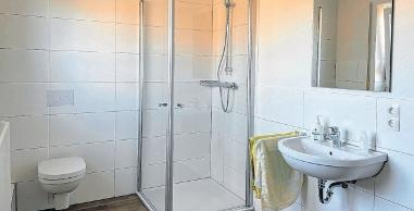 W e n n m a n B a d b o d e n u n d D u s c h e d u r c h g ä n g i g f l i e s t , w i r k t d e r R a u m g r o ß z ü g i g e r u n d d e r D u s c h z u g a n g i s t z u d e m k o m p l e t t b a r r i e r e f r e i F o t o d j d