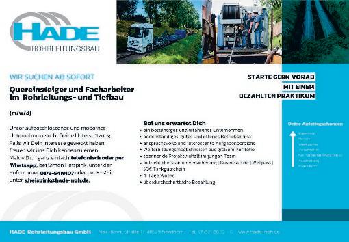 Wir suchen Sie in Salzbergen als: Anlagenmechaniker im Rohrleitungsbau (m/w/d)