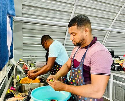 On the menu was tantalizing and tasty red beans cook up accompanied by deep fried chicken in a tangy pineapple sauce, yellow plantains, cassava pones, garden salad and traditional mauby and lime ‘swank’