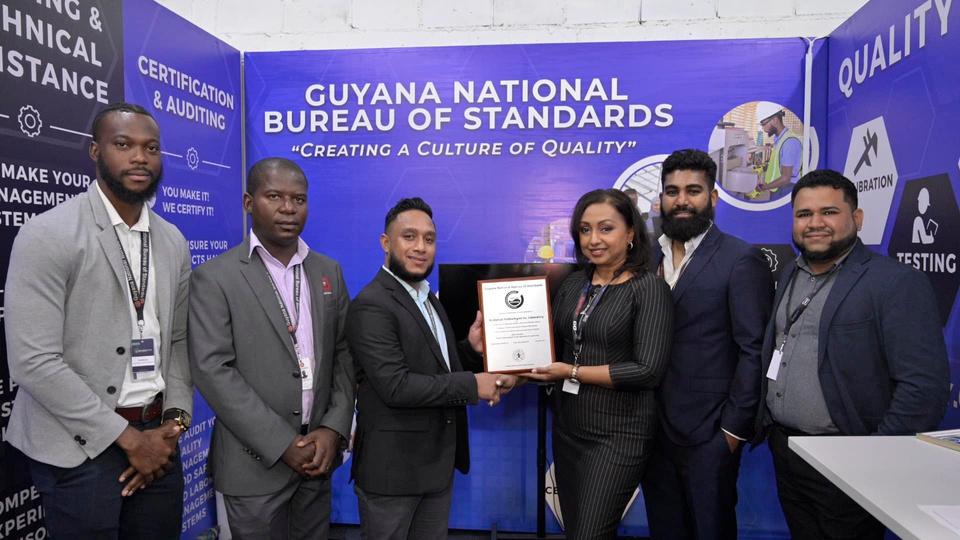 This achievement was recognized and celebrated at the Guyana Energy Conference & Supply Chain Expo 2024 on February 19, where GNBS Technical Officers, Orlando Sturge and Peter Ho-A-Lim, presented a certificate and plaque to Regional General Manager Ms Amrita Ballie and Mr Nathan Maharaj, Director Technical and Operations