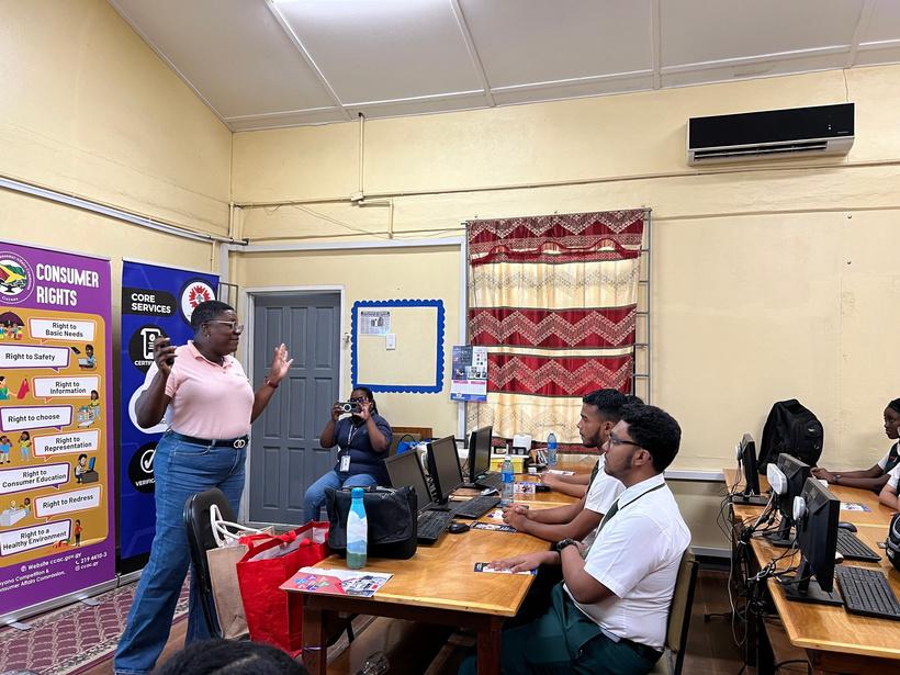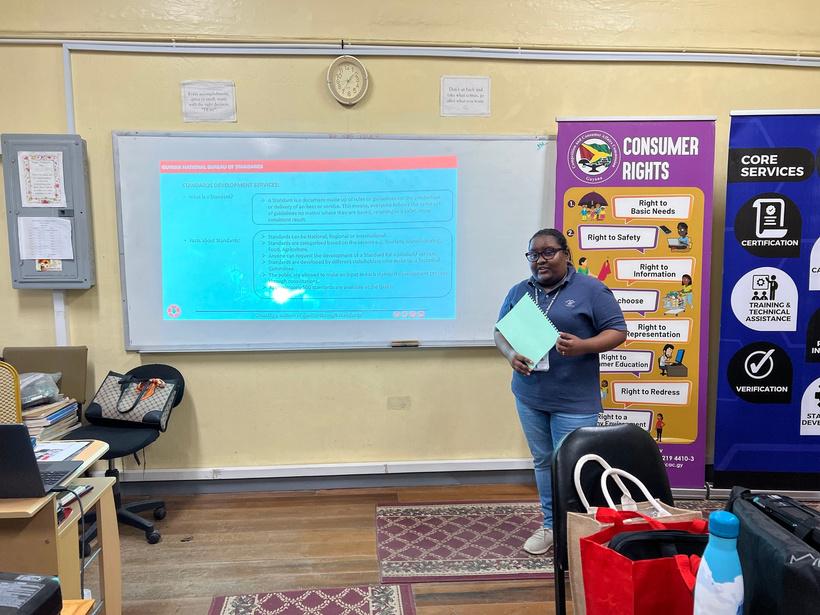 The GNBS Corporate Communications Team has been collaborating with staff of its sister agencies, the Department of Consumer Affairs and Competition and Consumer Affairs Commission to conduct a series of highly interactive school lectures at Secondary Schools in Region Three (3)