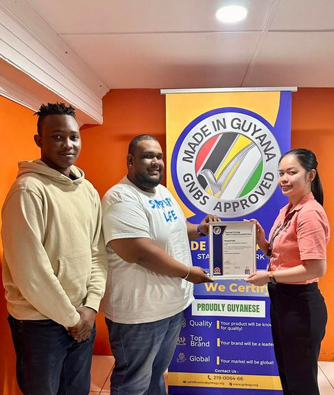 On February 09, during the presentation ceremony, Technical Officer Orlando Sturge handed over the Made in Guyana Certificate to BACIF’s Managing Director, Mr Peter Pompey