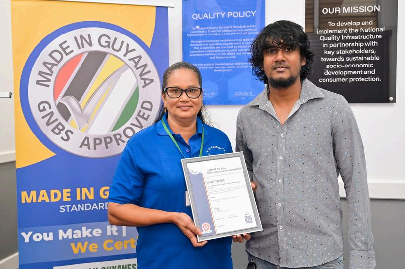 On February 17, KB Enterprise achieved the rights to use the GNBS Approved Made in Guyana Standards Mark on its Green Seasoning, Mango Achar and Pepper Sauce while Felicia’s Designs received certification for its Casual Dresses and Afrocentric Clothing