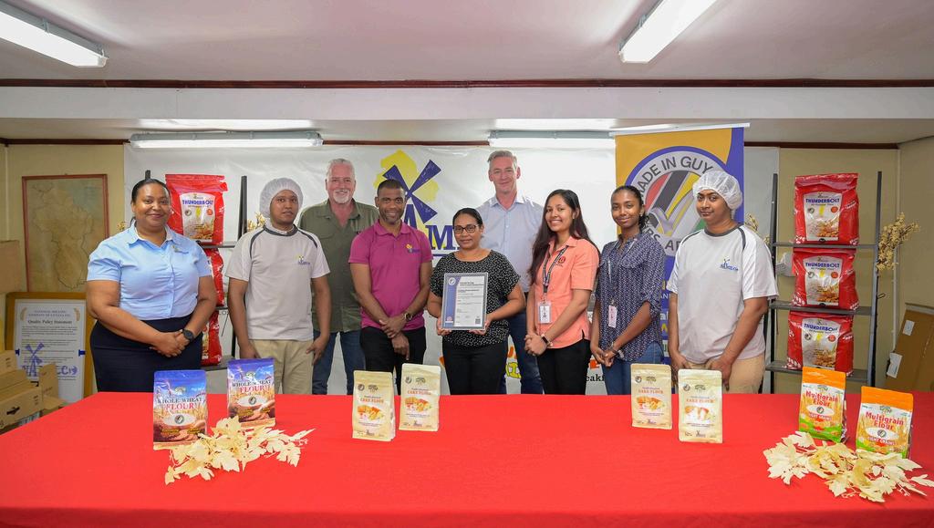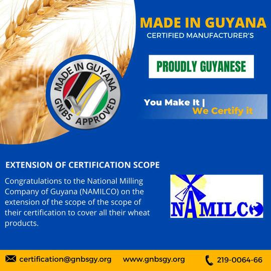 On July 18, the National Milling Company of Guyana (NAMILCO) successfully achieved the rights to continue using the GNBS Made in Guyana Standards Mark on its Maid Marian Products, Thunderbolt Flour, Harvest High Fiber Wholewheat, and Whole Wheat Mix.