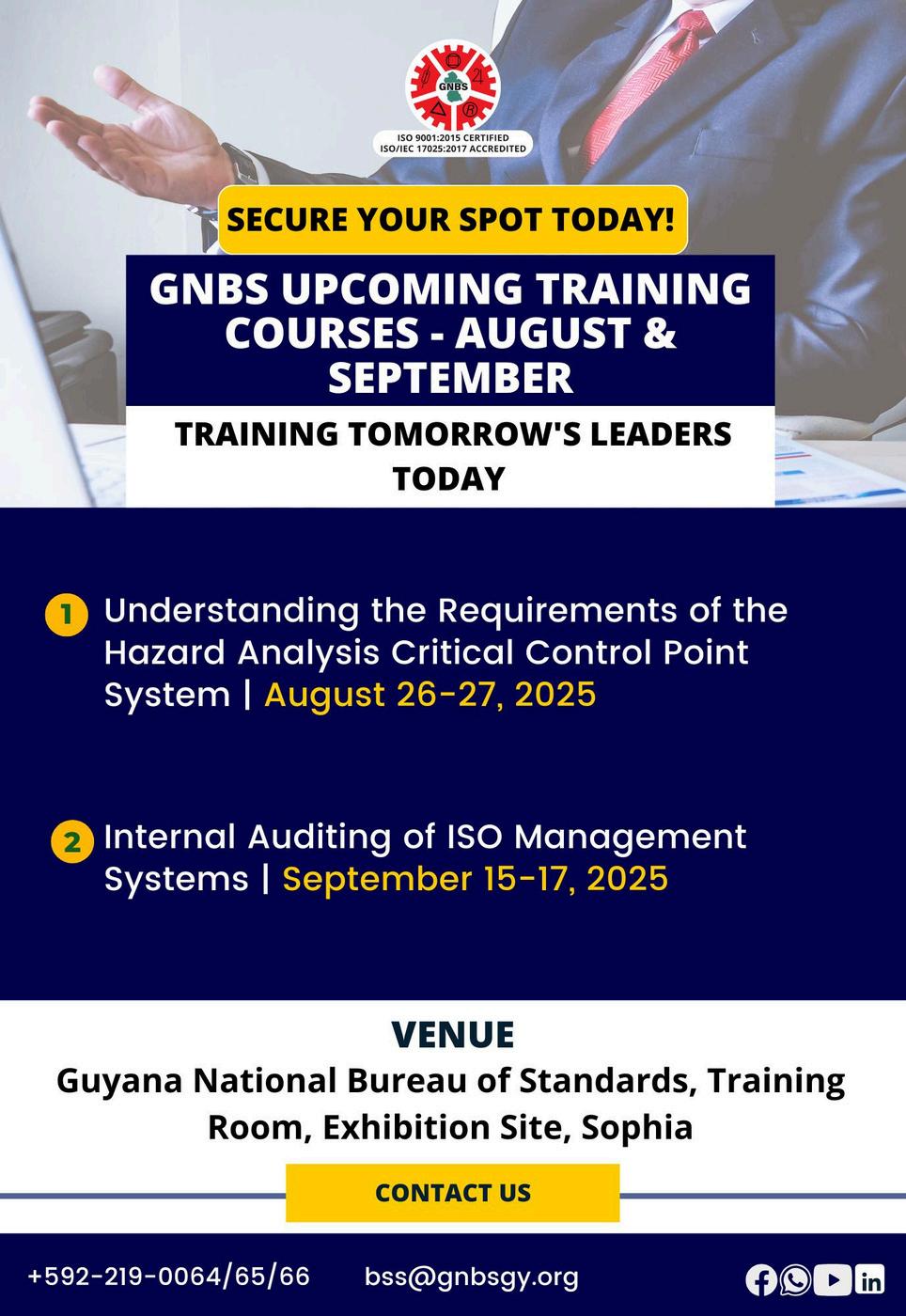 In August, the GNBS engaged in a highly interactive lecture with participants of Youth Challenge Guyana’s Electrical Installation Training Programme at the St. Sidwell's Training Hall.