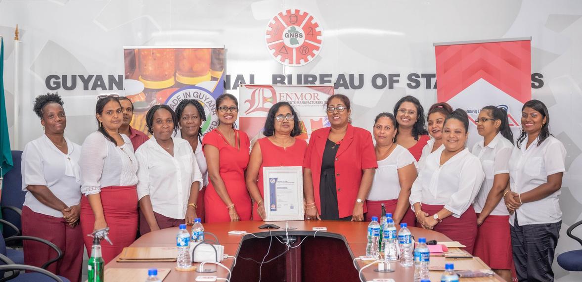 Denmor Garments Manufacturing Inc. became the first garment manufacturer to achieve the rights to use the GNBS Approved Made in Guyana Standards Mark for its Safety Garments (PPE).