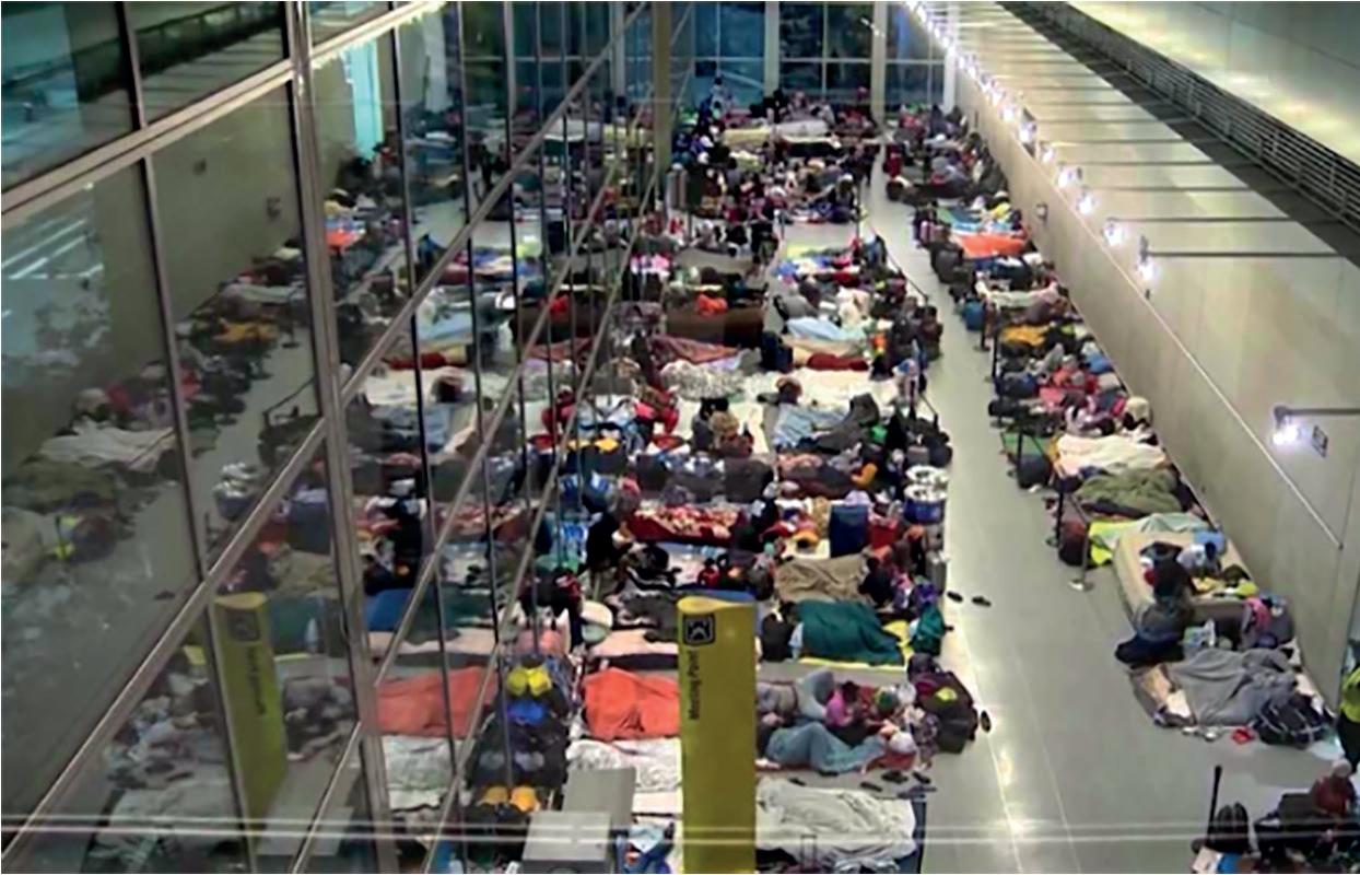 migrantes recém-chegados que têm utilizado o aeroporto como último recurso.