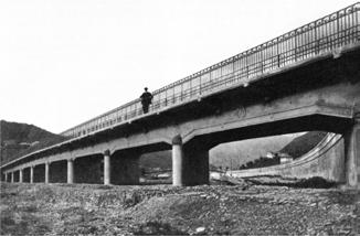 Punime restaurimi në Urën Carregas, me ndërhyrje të rëndësishme në strukturën e harqeve mbi përroin Bisagno, Xhenova. Shtator 1923. Burimi: Kabineti