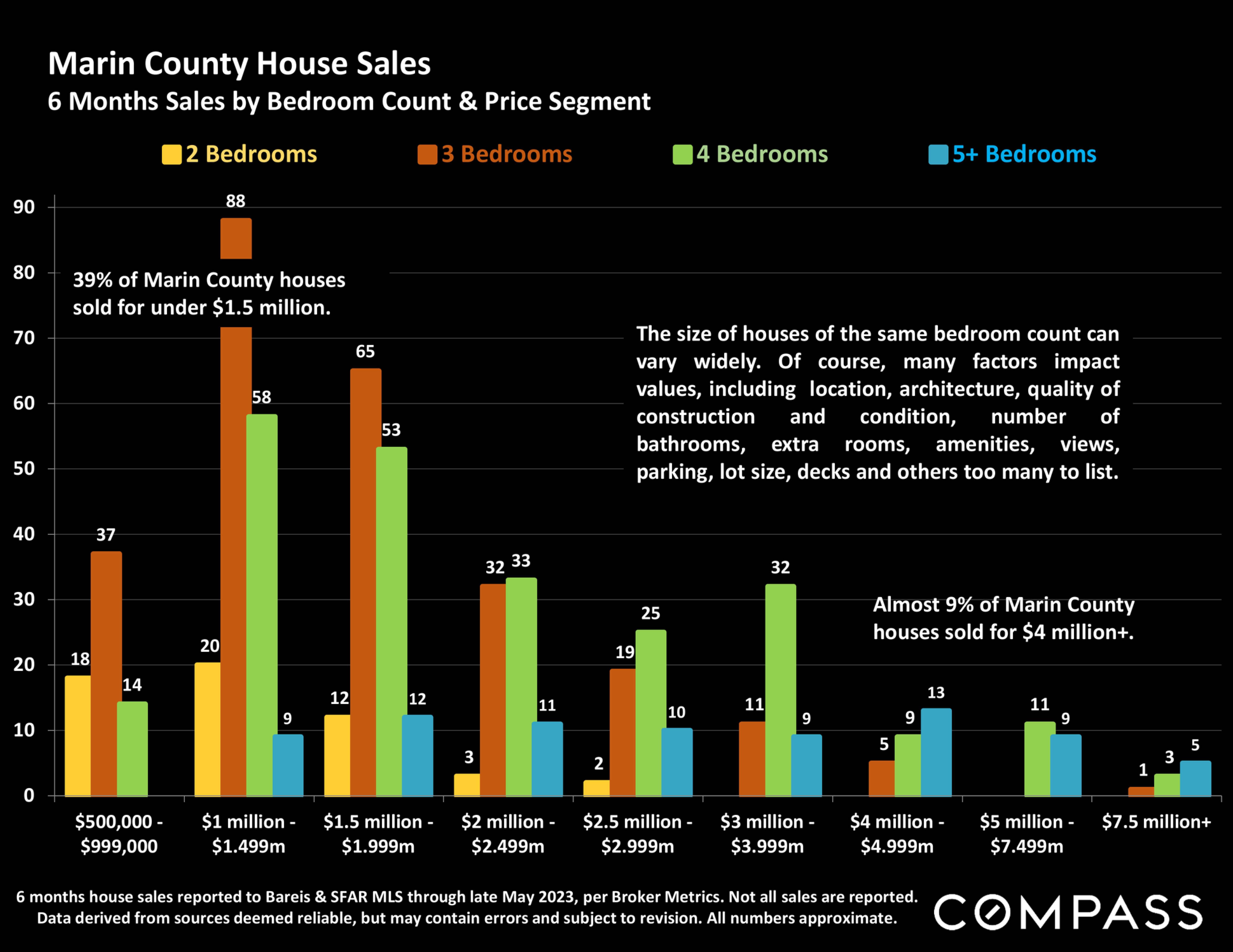3 Bedroom, 2 Bath Houses 4 Bedroom, 3 Bath Houses County Marin County: More Expensive** San Mateo County San Francisco Santa Clara County Marin County: More Affordable** Alameda County Napa County Sonoma County Contra Costa Solano County Median Sales Price $2,035,000 $1,550,000 $1,400,000 $1,393,000 $1,120,000 $968,000 $835,000 $750,000 $670,000 $538,000 Median Square Footage 1609 sq.ft. 1480 sq.ft. 1580 sq.ft. 1402 sq.ft. 1526 sq.ft. 1410 sq.ft. 1443 sq.ft. 1501 sq.ft. 1430 sq.ft. 1502 sq.ft. Median Dollar per Square Foot $1183/sq.ft. $1045/sq.ft. $940/sq.ft. $984/sq.ft. $707/sq.ft. $692/sq.ft. $564/sq.ft. $507/sq.ft. $487/sq.ft. $364/sq.ft. Median Sales Price $2,640,000 $2,125,000 $1,850,000 $1,750,000 $1,500,000 $1,450,000 $1,100,000 $910,000 $842,500 $660,000 Median Square Footage 2613 sq.ft. 2205 sq.ft. 2058 sq.ft. 2146 sq.ft. 2522 sq.ft. 2170 sq.ft. 2396 sq.ft. 2158 sq.ft. 2264 sq.ft. 2171 sq.ft. Median Dollar per Square Foot $998/sq.ft. $934/sq.ft. $987/sq.ft. $815/sq.ft. $570/sq.ft. $646/sq.ft. $473/sq.ft. $418/sq.ft. $381/sq.ft. $298/sq.ft.