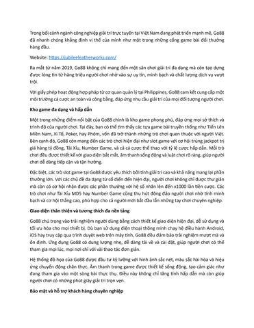 Go88 Official là cổng game bài đổi thưởng trực tuyến hàng đầu tại Việt Nam, mang đến trải nghiệm giải trí đỉnh cao với kho game đa dạng và chất lượng. Thành lập từ năm 2019, Go88 được cấp phép hoạt động hợp pháp tại Philippines, đảm bảo uy tín và minh bạch. Người chơi có thể tham gia các trò chơi hấp dẫn như game bài (Tiến Lên Miền Nam, Xì Tố, Poker), slot game với cơ hội trúng jackpot hàng tỷ đồng, Tài Xỉu, Number Game, và cá cược thể thao. Giao diện Go88 thiết kế hiện đại, đồ họa sắc nét, âm thanh sống động, tương thích với mọi thiết bị từ Android, iOS đến trình duyệt web. Hệ thống bảo mật tiên tiến bảo vệ thông tin người chơi, kết hợp với dịch vụ chăm sóc khách hàng 24/7 chuyên nghiệp. Go88 còn nổi bật với các chương trình khuyến mãi hấp dẫn, như giftcode 50k cho người chơi mới, cùng thao tác nạp rút tiền nhanh chóng qua nhiều phương thức. Với sự công bằng và cơ hội thắng lớn, Go88 là lựa chọn lý tưởng cho những ai yêu thích cá cược trực tuyến.