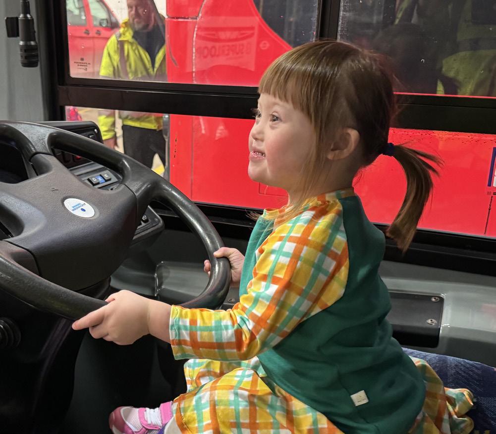 Get on Downs is a local support group for families with young children with Down Syndrome. The families enjoyed having the opportunity to see the sights, go through the bus wash and sit in the cab.