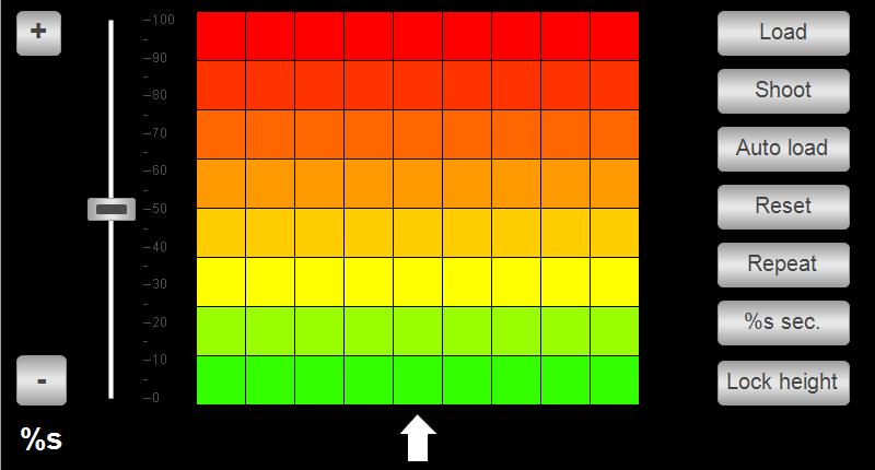 DieHöhedesSchusseswirdüberdenRollbalkenaufderlinkenSeitedesBildschirmseingestellt.