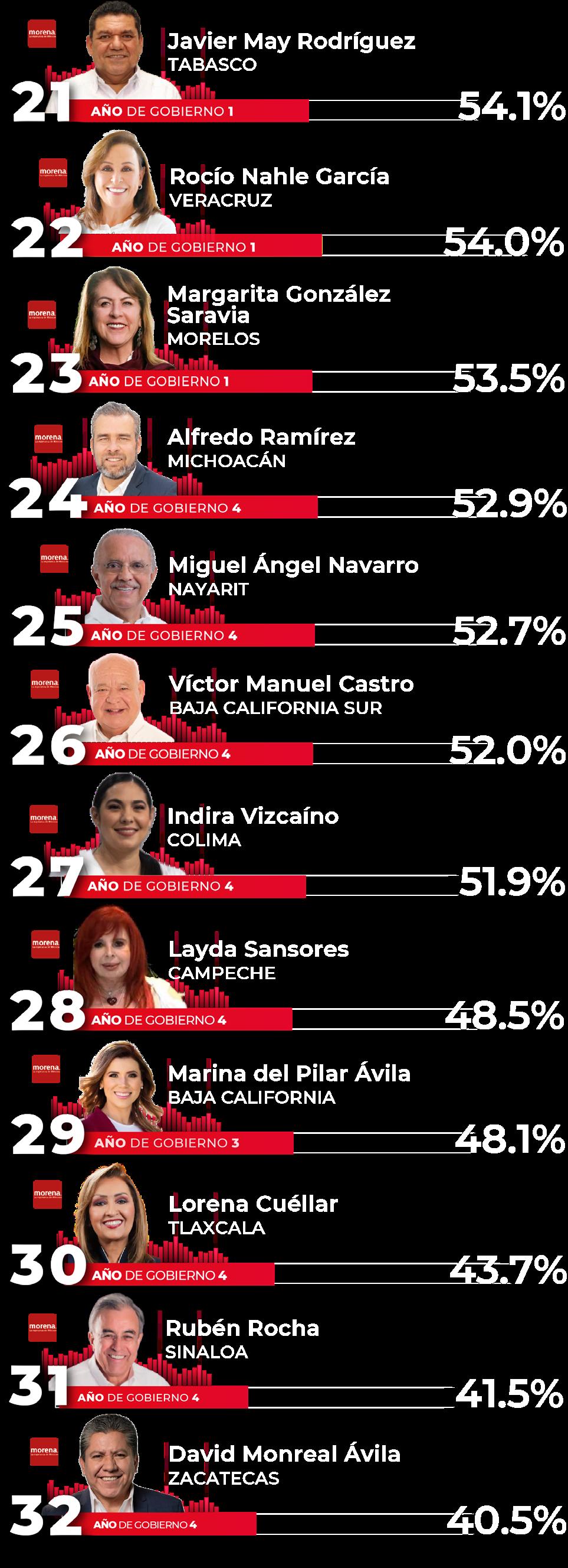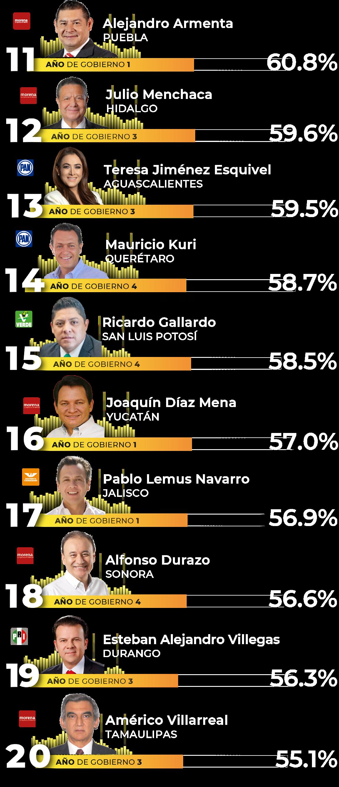 DESTACAN TRES LIDERAZGOS ESTATALES CON APROBACIÓN SÓLIDA