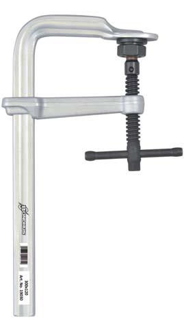 Very heavy duty all steel screw F-clamps from IDEAL deliver very high clamping forces while eliminating the possibility of a broken clamp arm if used beyond its design limits. The very heavy (1 9/16“ x 13/16“) one piece formed rail and upper clamp arm is made from a high quality, drawn pro fi le and as a result, the clamp has a very high clamping capability while eliminating the possibility of a broken clamp arm if used beyond its design limits.The one piece rail/upper clamp arm assembly is designed to