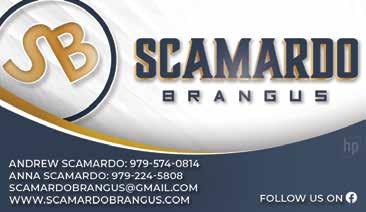 59 FALL 2023 FRONTLINE BEEF PRODUCER | STATE DIRECTORY | TEXAS 51 Contact Melanie Fuller at mfuller@gobrangus.com or 979.255.3343 for advertising spaces ARKANSAS — CALIFORNIA — FLORIDA — GEORGIA — KANSAS — LOUISIANA JOHN MILAM, OWNER Grady Green, Ranch Manager 870-314-3673 | grady@dragginmranch.com El Dorado, Arkansas www.dragginm.com 2020 IBBA Top ET Breeder FIND A BREEDER NEAR YOU VISIT US AT GOBRANGUS.COM / BREEDER-SEARCH STATE DIRECTORY L.G. Herdon, Jr Owner 912.293.1316 Sky Herdon, Co-Owner 912.245.0428 Kevin Asbury, Manager 850.252.7290 Herndon Businesss Card ad.indd 1 7/15/21 1:57 PM BRANGUS & ULTRABLACK Schmidt Farms For advertising opportunities in the Brangus Journal or Frontline Beef Producer, contact Kyle Caldwell at 214-794-3625 or kcaldwell@gobrangus.com