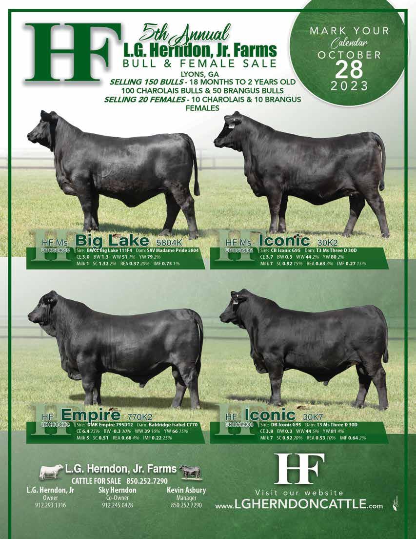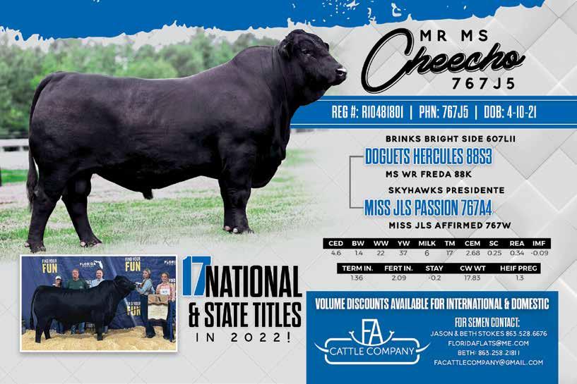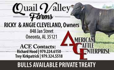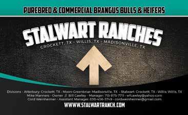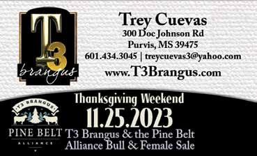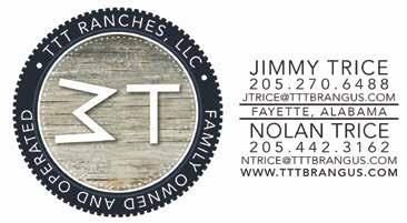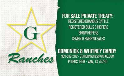 57 FALL 2023 FRONTLINE BEEF PRODUCER | STATE DIRECTORY | LOUISIANA - MISSISSIPPI - MISSOURI - NEW MEXICO - OKLAHOMA - TEXAS 51 Contact Melanie Fuller at mfuller@gobrangus.com or 979.255.3343 for advertising spaces ARKANSAS — CALIFORNIA — FLORIDA — GEORGIA — KANSAS — LOUISIANA JOHN MILAM, OWNER Grady Green, Ranch Manager 870-314-3673 | grady@dragginmranch.com El Dorado, Arkansas www.dragginm.com 2020 IBBA Top ET Breeder Brangus & Ultrablacks BULLS & FEMALES SPANISH RANCH Brangus and Ultrablack Cattle doiron@spanishranch.net Follow Us on Facebook or Instagram @spanishranchcuyama available private treaty and select sales FIND A BREEDER NEAR YOU VISIT US AT GOBRANGUS.COM / BREEDER-SEARCH STATE DIRECTORY L.G. Herdon, Jr Owner 912.293.1316 Sky Herdon, Co-Owner 912.245.0428 Kevin Asbury, Manager 850.252.7290 Herndon Businesss Card ad.indd 1 7/15/21 1:57 PM Breeding the Best Better. © Top Quality Bulls Available by Private Treaty Call today to pick your next herd sire. 575 365 6356 ™ at We stall Ran ch — Joe Cavender, Owner Justin Matejka, General Manager | 903-521-1070 Mark Cowan, Marketing & Customer Service | 903-810-2413 1200 CR 4716 • Troup, TX 75789 | CavenderRanches.com Certified Free Herd # D80550202 Sales: 2nd Saturday in March 3rd Tuesday in March 4th Saturday in April 4th Weekend in October 3rd Weekend in November