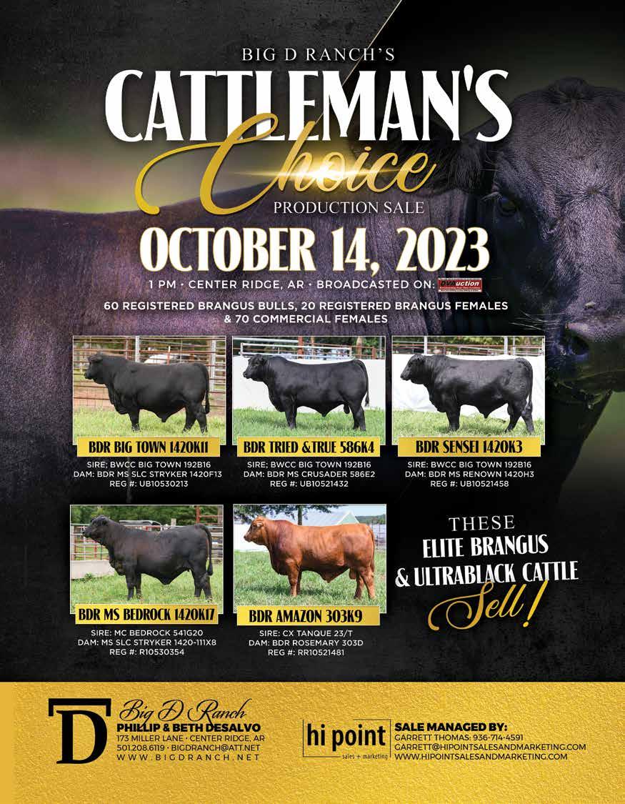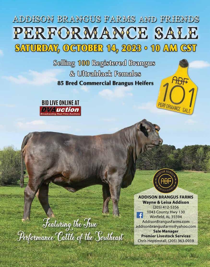 FALL 2023 FRONTLINE BEEF PRODUCER 60 | CALENDAR OF EVENTS | CALENDAR 3-4 NOVEMBER GENEPLUS AT CHIMNEY ROCK CATTLE COMPANY FALL 2023 SALE SEPTEMBER 18TH ROMA BRANGUS SALE 1 NEW MEXICO STATE FAIR OPEN BRANGUS SHOW – POINT SHOW 15 MBJ AND TRIO POWER OF THE BRANDS SALE 9 OCTOBER 47TH ANNUAL ROCKHAMPTON BRANGUS SALE 9-10 THE BRANCH RANCH ROUGH AND READY BULL SALE 6 16 Want Your Event Listed? Submit Them Today! Visit GoBrangus.com/events-and-shows/ ACE SOUTHERN HARVEST SALE AT WILEY RANCH 9 MP BRANGUS “WHERE PERFORMANCE MEETS STYLE” 21 9 DECEMBER TEXAS DROVERS BULL & COMMERCIAL FEMALE SALE ACE FEMALE & BULL SALE AT QUAIL VALLEY FARMS 10-11 NATIONAL SHOW OF MERIT – NATIONAL SOE POINT SHOW 25-28 BRIGGS RANCHES 20TH ANNUAL SALE 26-28 LG HERNDON JR FARMS BULL & FEMALE SALE 28 TOWN CREEK FARM BULL SALE AND COMMERCIAL HEIFER SALE 21 SOUTHEAST BRANGUS BREEDERS ASSOCIATION JUNIOR SHOW 29 SOUTHEAST BRANGUS BREEDERS ASSOCIATION SHOWCASE SALE 30 MIDSOUTH CATTLE COMPANY & NEAL RANCH ANNUAL SALE PHILLIPS-FENCO BULL SALE 24 SCAMARDO BRANGUS ANNUAL PRODUCTION SALE 7 OAK CREEK FARMS FORAGE DEVELOPED BULL & HEIFER SALE 28 ADDISON BRANGUS FARMS SALE 14 NOVEMBER THE BEST OF BRANGUS FROZEN GENETICS SALE 20 CAVENDER BRANGUS 19TH ANNUAL FALL PRODUCTION SALE 17-18 CDP BRANGUS FALL PRODUCTION SALE 15-16 VILLA RANCH INAUGURAL ONLINE SALE 6 2ND ANNUAL T3 BRANGUS & THE PINE BELT ALLIANCE SALE 25 BIG D RANCH”S CATTLEMAN”S CHOICE PRODUCTION SALE 14 OKLAHOMA BRANGUS BREEDERS ASSOCIATION SALE 21 VILLA’S-CX ADVANTAGE SALE AT COX EXCALIBUR 14