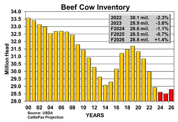 • Cow and bull slaughter is forecast to be 6.9 million, which is down about 700,000 head.