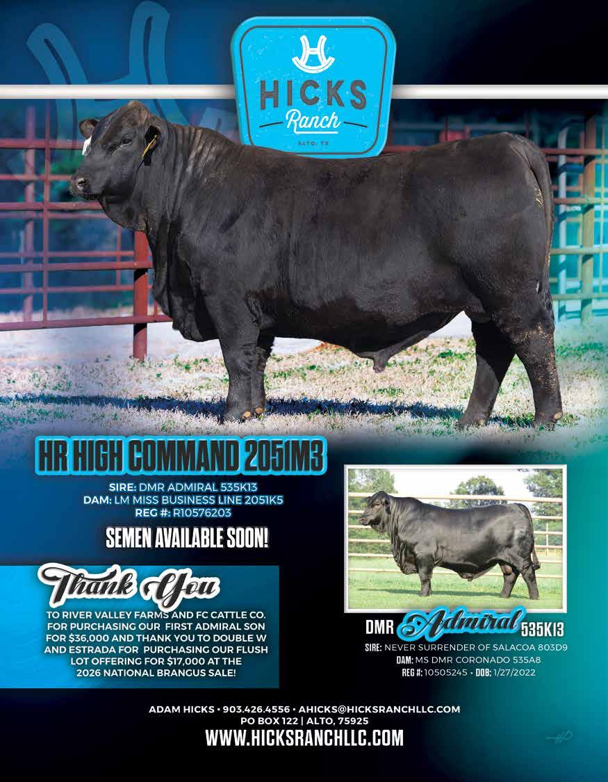 “Data is one of the most powerful tools we have to improve cattle,” said Hunter Horne, Great Mark Western. “The Big Data Project helps Brangus breeders use realworld information to make smarter selection decisions and move the breed forward faster.”