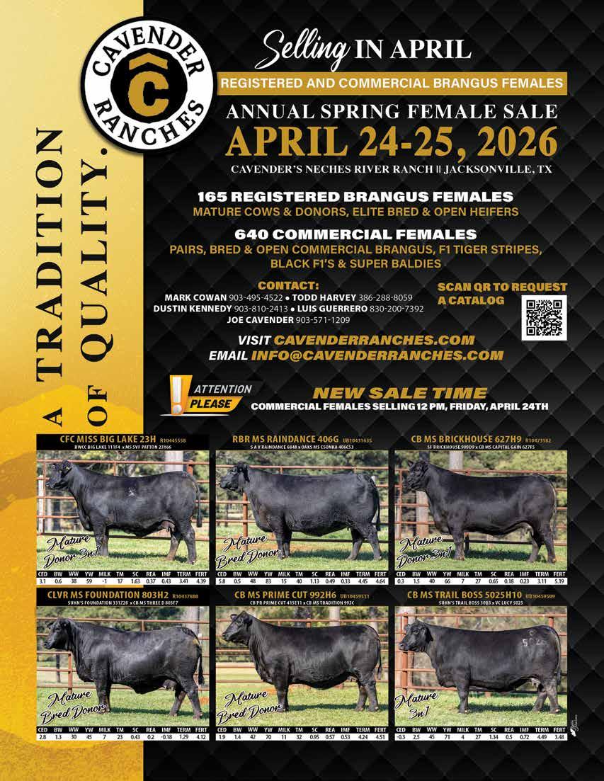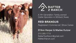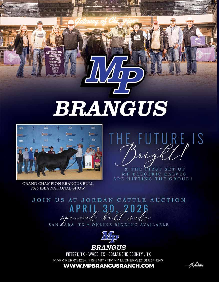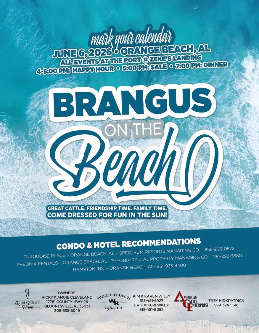 The Brangus Journal (ISSN 0006-9132) is published monthly except February, June, July, and September by Brangus Publications Inc. (BPI), 2800 Barron Rd., Unit 203 College Station, TX 77845. Periodicals postage paid at College Station, TX and additional mailing offices. POSTMASTER: Send address change to Brangus Journal, 2800 Barron Rd., Unit 203 College Station, TX 77845.