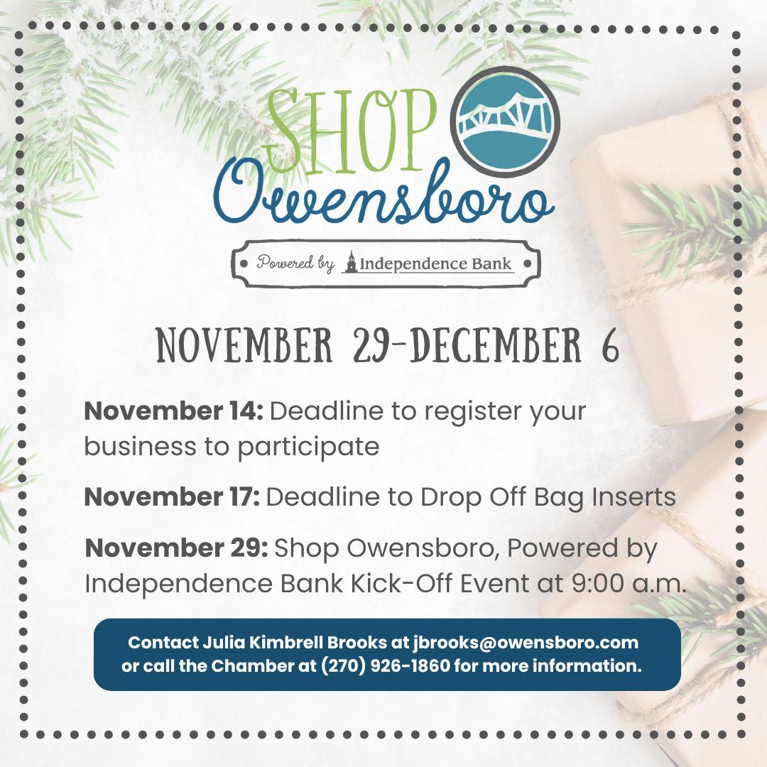 The program will also include details of the 2025 Shop Owensboro, Powered by Independence Bank including current participating businesses and important dates.