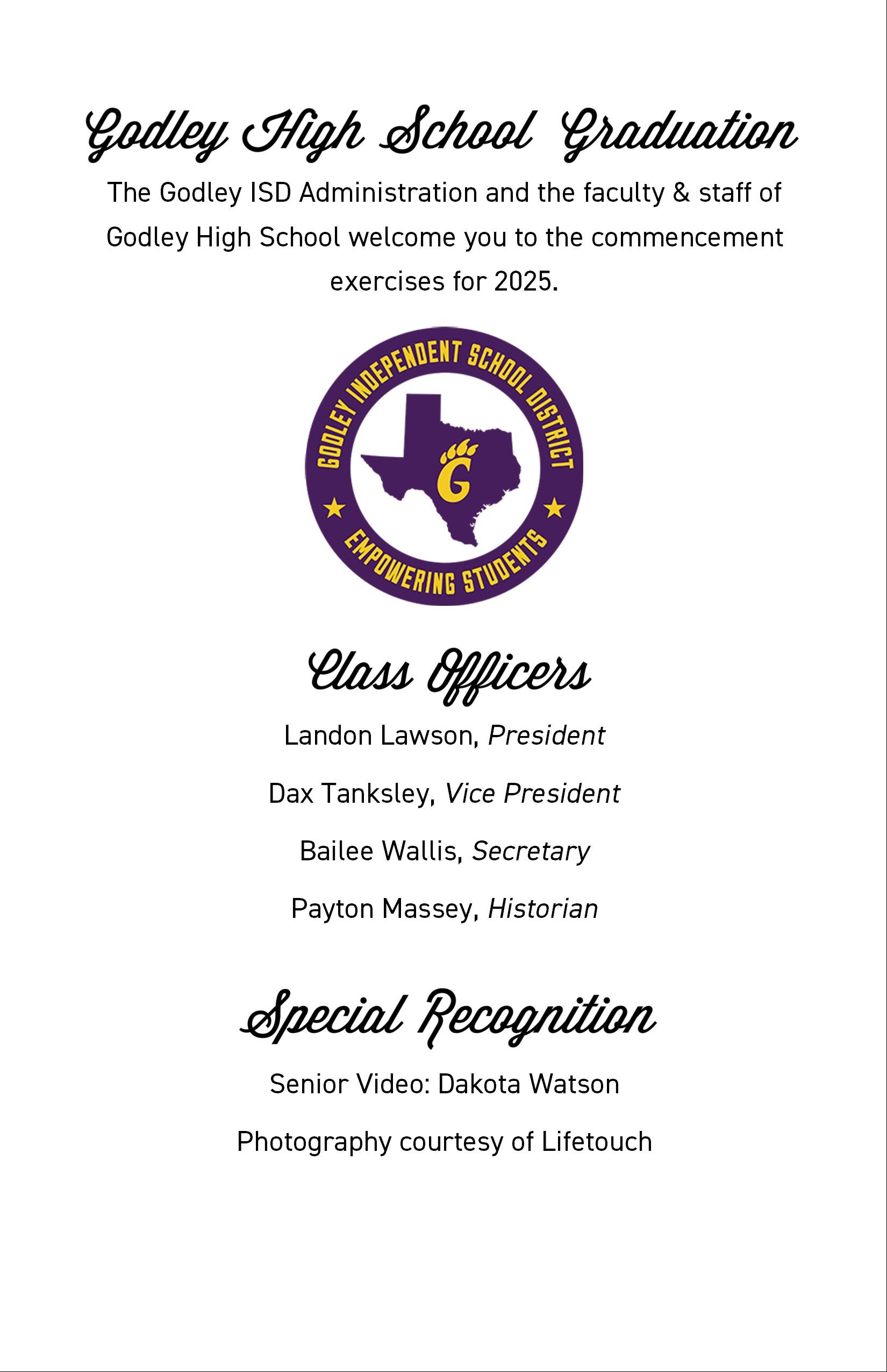 Godley High School Graduation 2025 Program