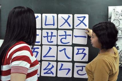 學員輪流朗讀三十七個注音符號,彼 此分享。
