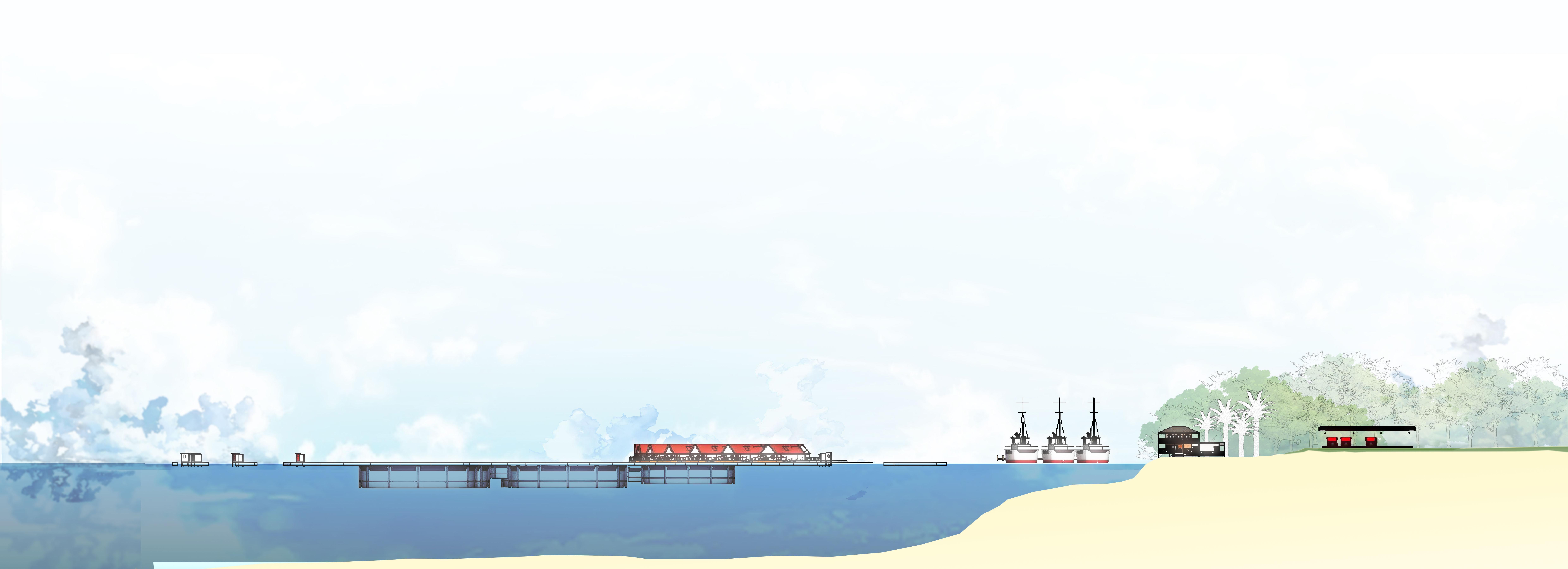 the folding door open widely to gesture welcomeness, which leads to the bar and placed at the right end of the building floor that contains the infirmary and Back to the ground floor, the bathroom is through the sliding door whereas the and man’s on the right. The objective to draw in the community, encourage communicate more throughout the day. A where the fishers have rough days of wouldn’t go straight to home since the arrive here in this center.