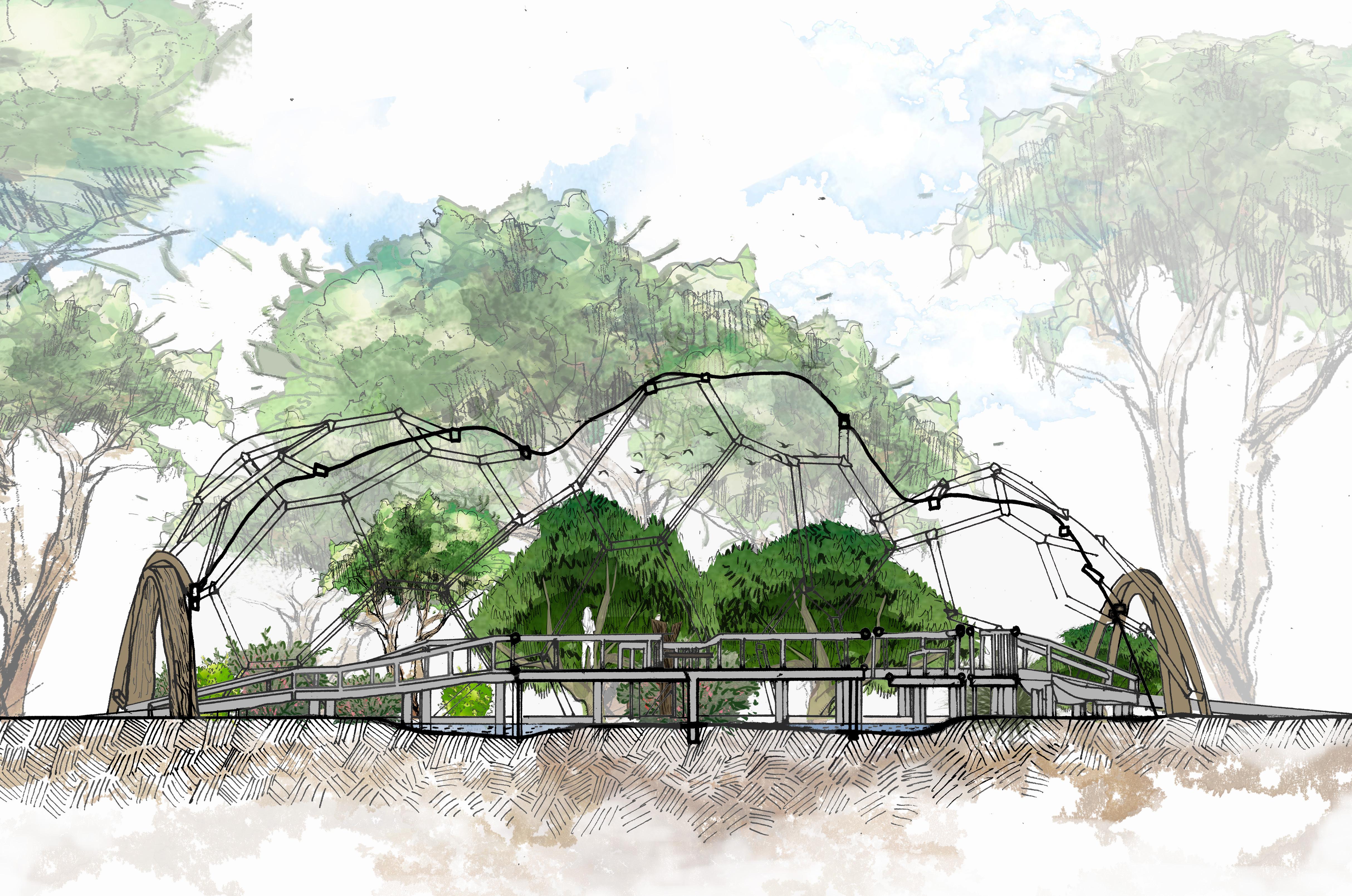 Podargus strigoides Tawny FrogmouthSince it always camouflage itself into tree trunks, the seat is available for visitor to observe easier Polytelis alexandrae Princess Parrot Beautiful both in apperance and personality contributed to the aviary Lathamus Discolor Swift Parrot Noisy and active, light up the mood in the aviary SITE PLAN 1:200 (WITHOUT DOME) SITE PLAN 1:200 (WITHOUT DOME)