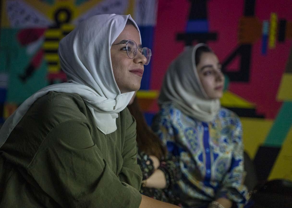 DE Studierende der Fine Arts in Erbil erarbeiteten in zwei Workshopphasen mit den Theatermacher*innen Helgard Haug aus Deutschland (Rimini Protokolle) und Mohammed Kacimi aus Frankreich (La Confession d’Abraham) neue Perspektiven auf Körper, Text und Performance.