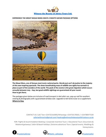 Kenyan owned tours & travel consultancy that specializes in custom designed safari adventures for you to see, live & tell your African experience.