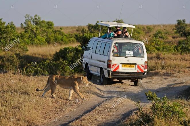 Each Safari vehicle carries safari accessories including wildlife books, beanbags to support cameras on car doors and window sills, binoculars, a first-aid kit, an ice-chest, a fire extinguisher.