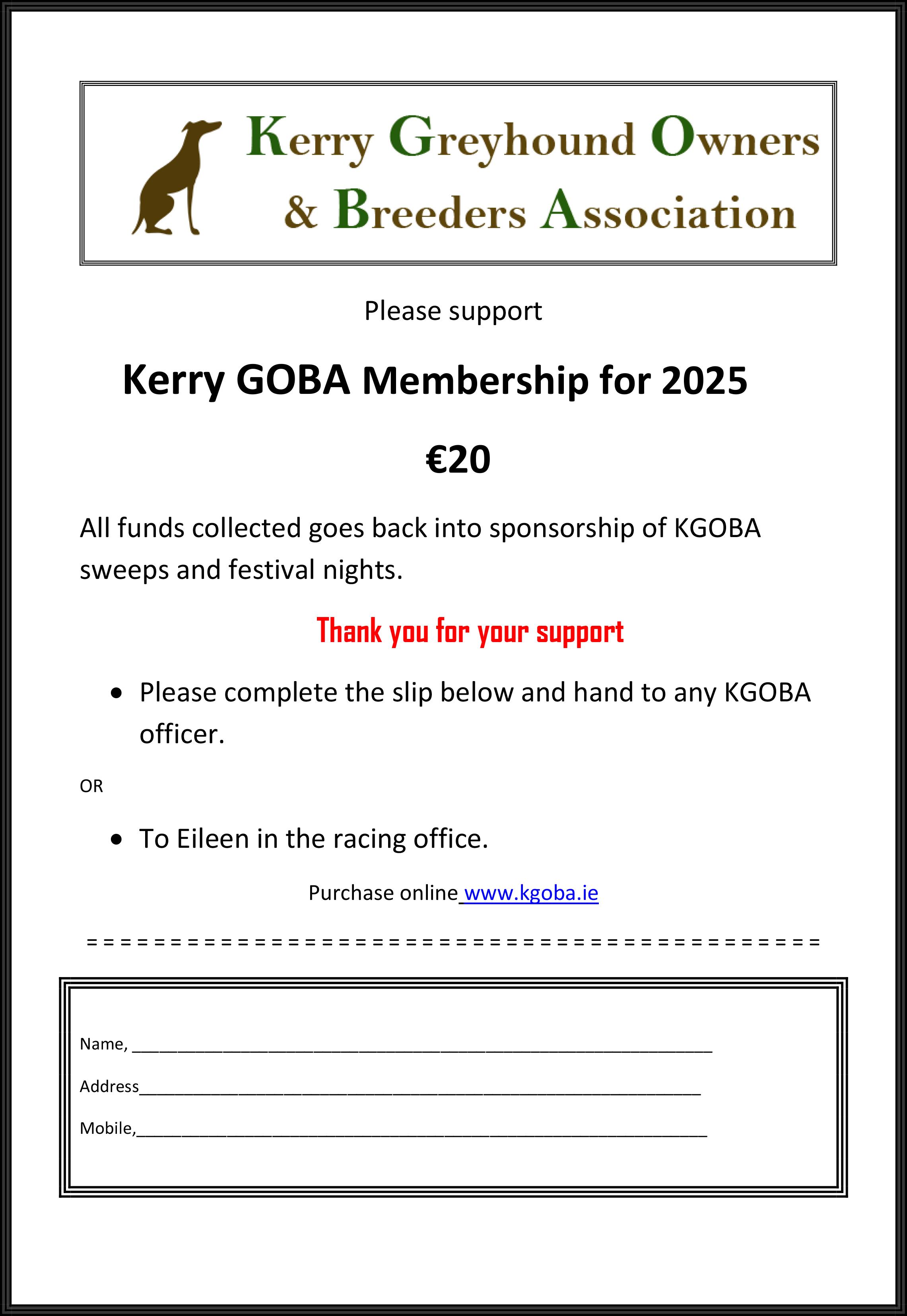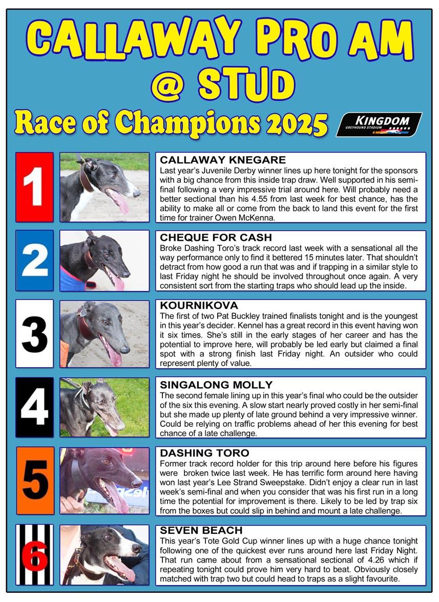 Greyhound Racing Ireland has a legitimate interest in filming and photography at this venue during events for promotional, regulatory and archival purposes. Footage, imagery and voice may be broadcast via television, radio, social media platforms and the GRI website at www.grireland.ie .CCTV operates at this venue for safety, security and regulatory purposes. For further information please contact PR@grireland.ie