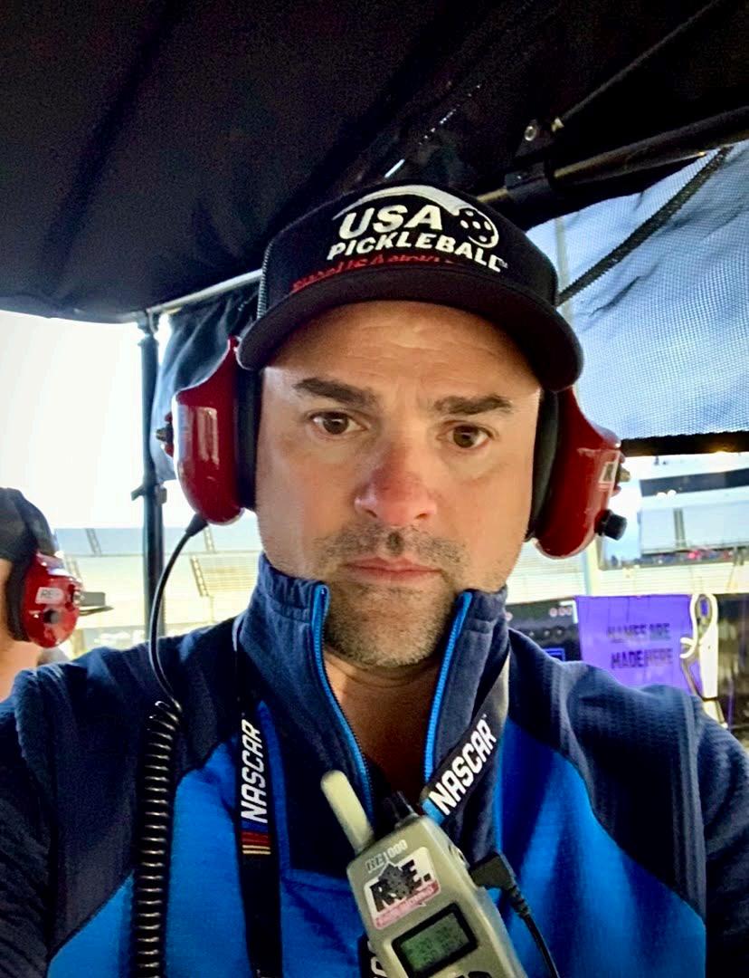 9. Favorite memory with a car? Easy. Earlier this year at the NASCAR Xfinity Race (Martinsville Speedway), USA Pickleball was the car sponsor for the Joe Gibbs Racing Team’s #18 Toyota. As the sponsor, we met with Joe and the driver, Ryan Truex for pre-race photos and had seats in the team’s pit cart during the race.