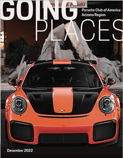 Going Places is the official publication of the Porsche Club of America, Arizona Region and is published electronically