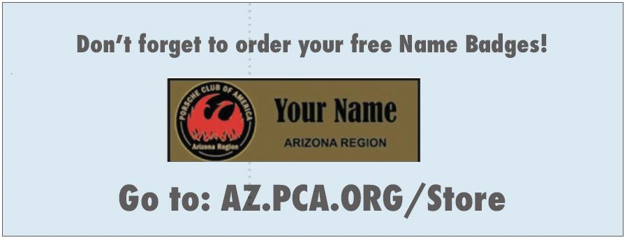 On behalf of the Board and entire club, I want to thank Betsy Andrade for 13 dedicated years as the Goodie Store Merchandise Chair. Betsy is stepping aside and we need a volunteer to take on this critical position. The Board has decided, as many other PCA Regions are doing, to utilize the PCA Store for AZPCA logo Apparel, which will make the new Goodie Store Chair’s job less complicated. Here is the job description: