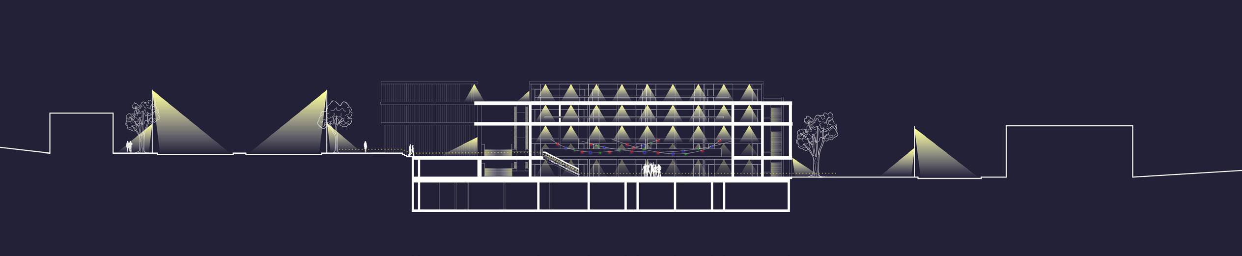 Figure 93: Perpendicular cross section to Ataturk Boule-vard through the courtyard showing the lighting design pro-posal