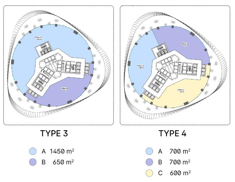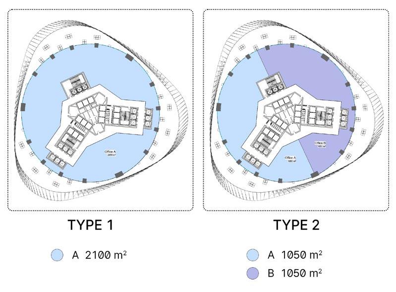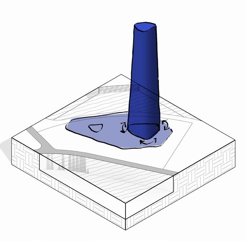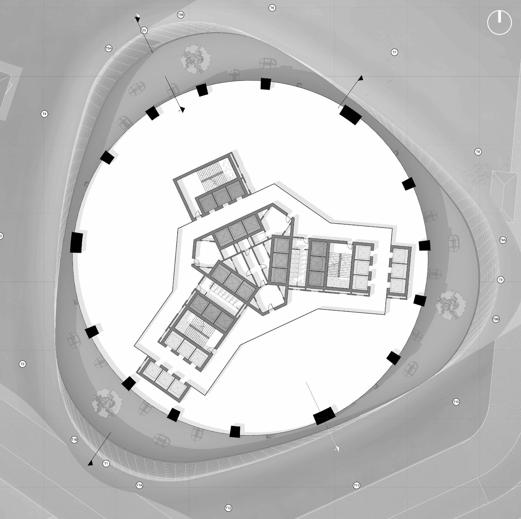 The tower is placed on the southeast part of site, guided by the urban axis and maximising view.