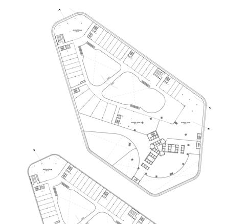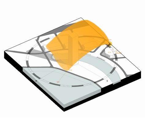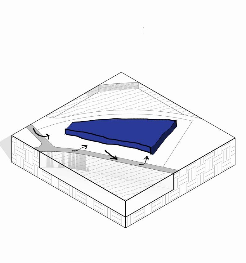 Cutting through the focal region to form semi-open spaces and create directional views and narrative