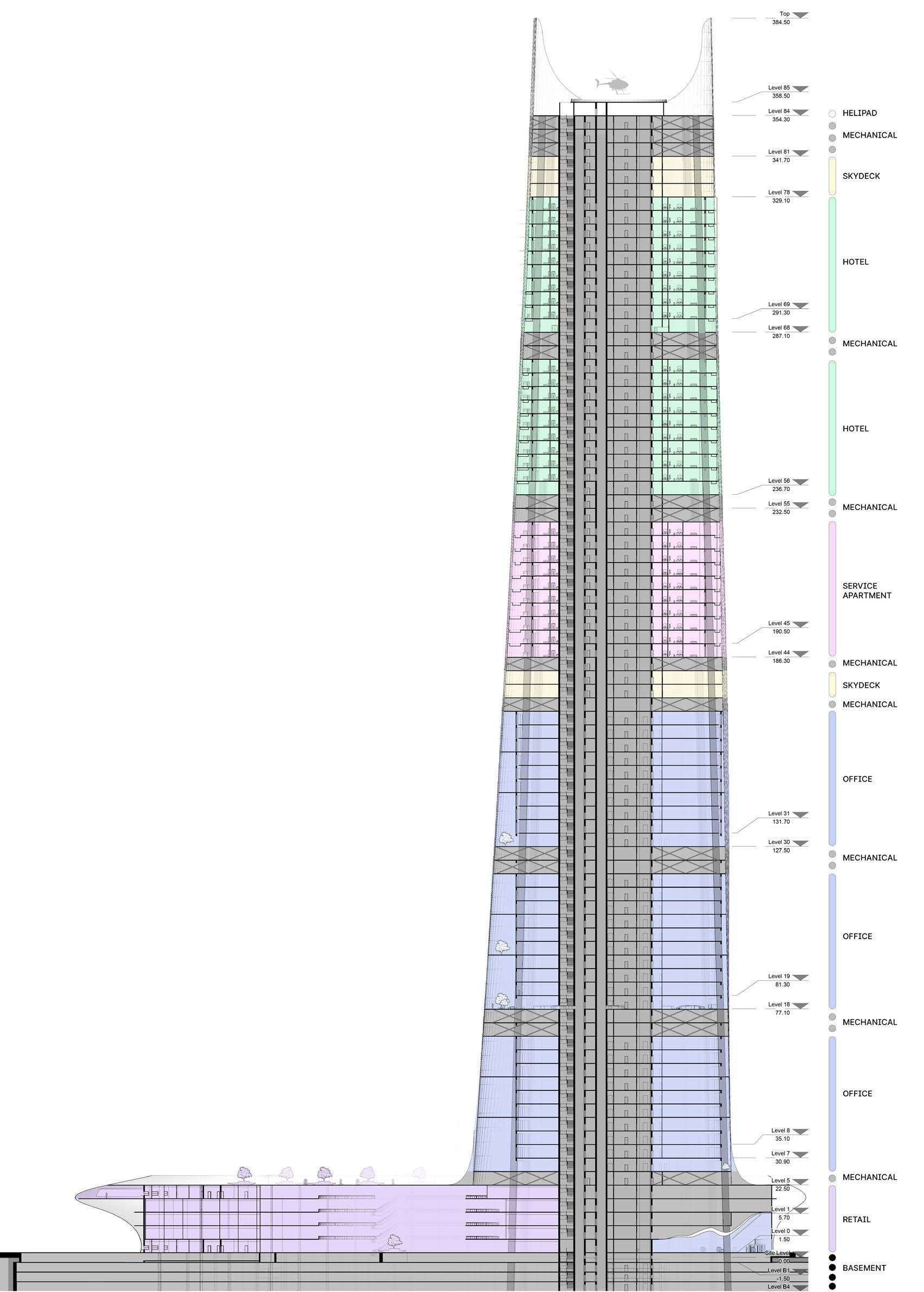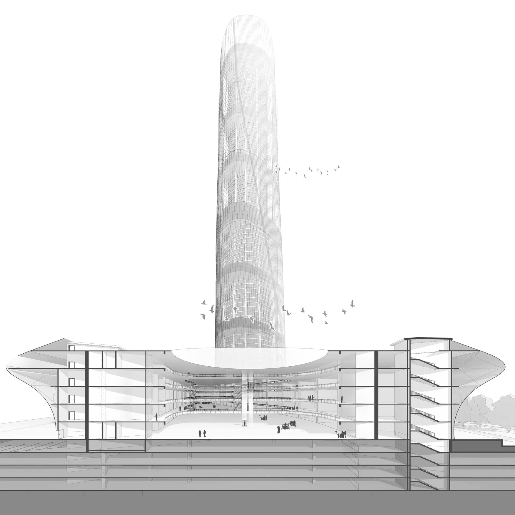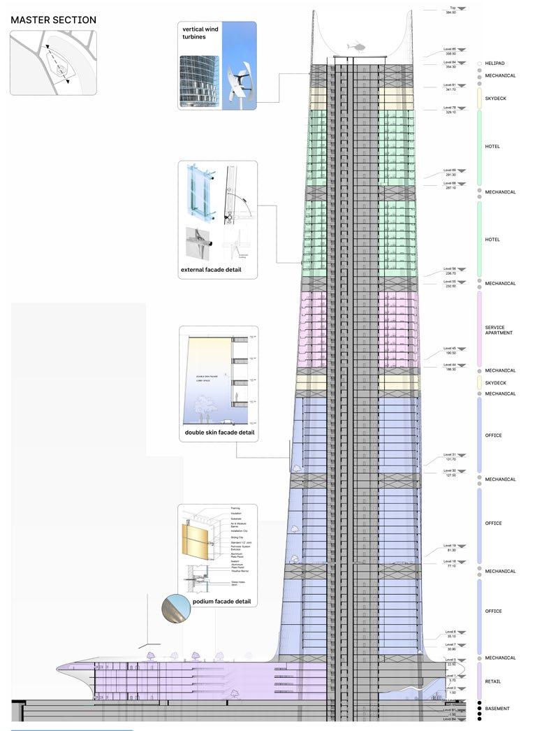 An explorative design of a towering mixed-use building that will for the crux of a urban skyline and cater to the development of multitude of economic and human activities that interconnects the human nature to the monolithic scale.