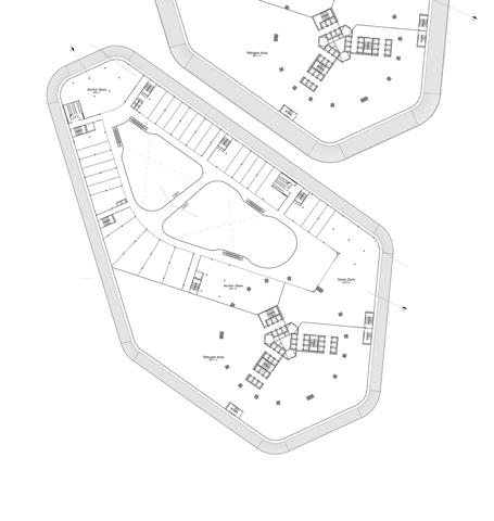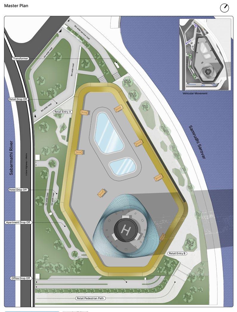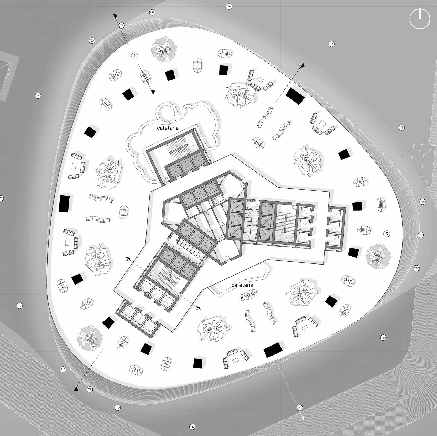 A podium is developed to accomodate the ground activities as well as bifurcate the various access.