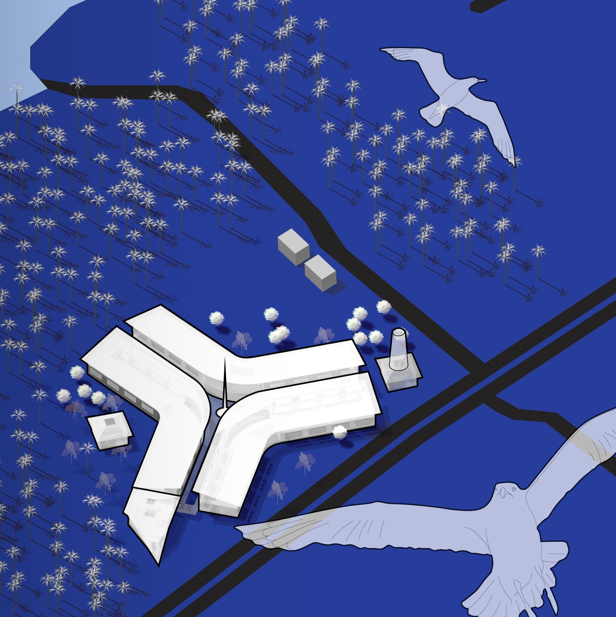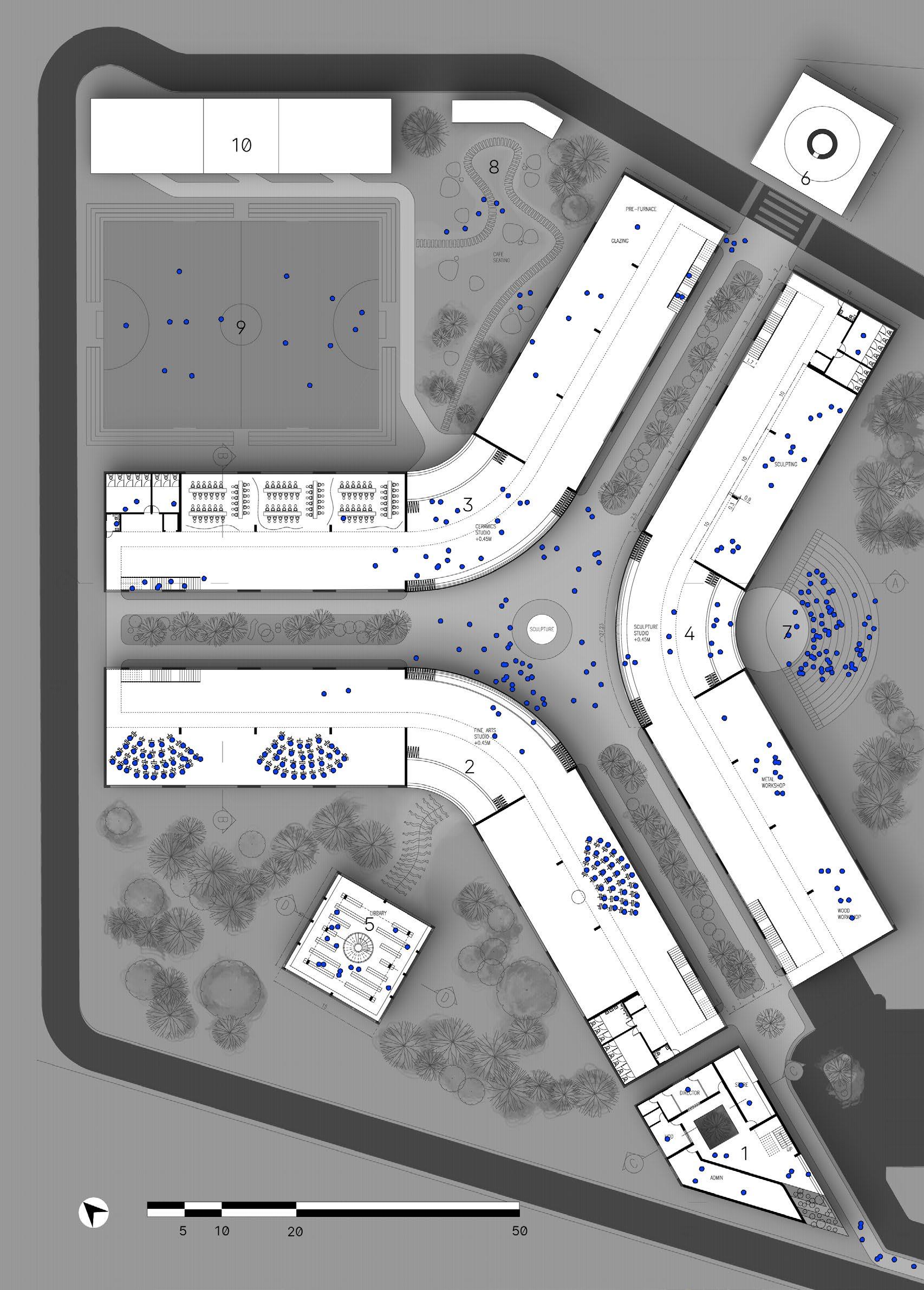 Placing additional spaces including library, kiln, admin, amphitheatre to react to the site and context