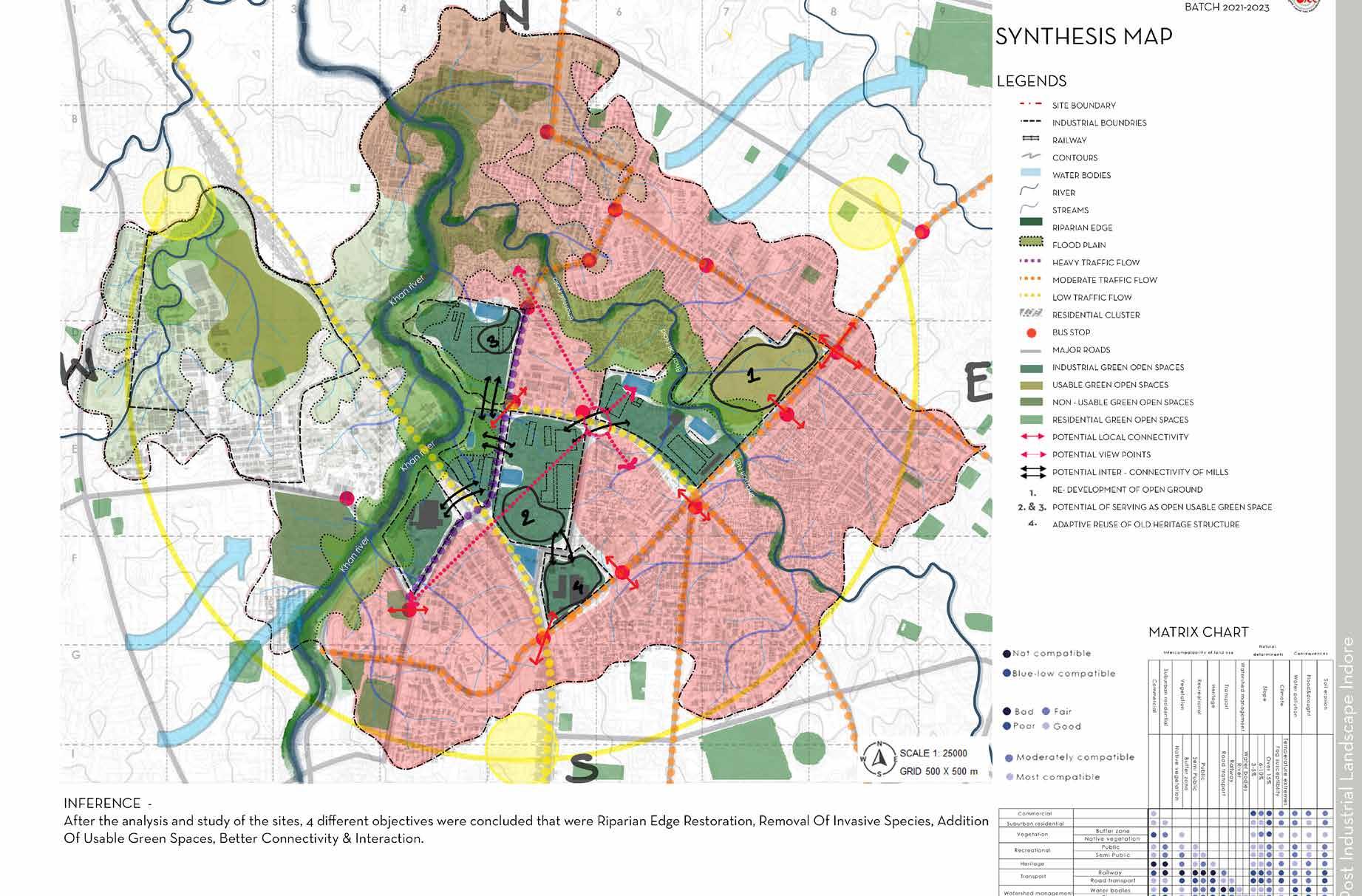 The landscape character map provides a valuable perspective on the industrial landscape of the project site, unveiling its unique features and qualities. Through meticulous studies and analysis, the map highlights the distinctive elements that shape the character of the industrial landscape. It identifies the dominant industrial structures, such as factories, warehouses, and manufacturing units, which define the visual identity of the site. Additionally, the map illustrates the interplay of built forms, open spaces, and natural elements within the industrial context, showcasing the intricate relationship between human intervention and the surrounding environment.