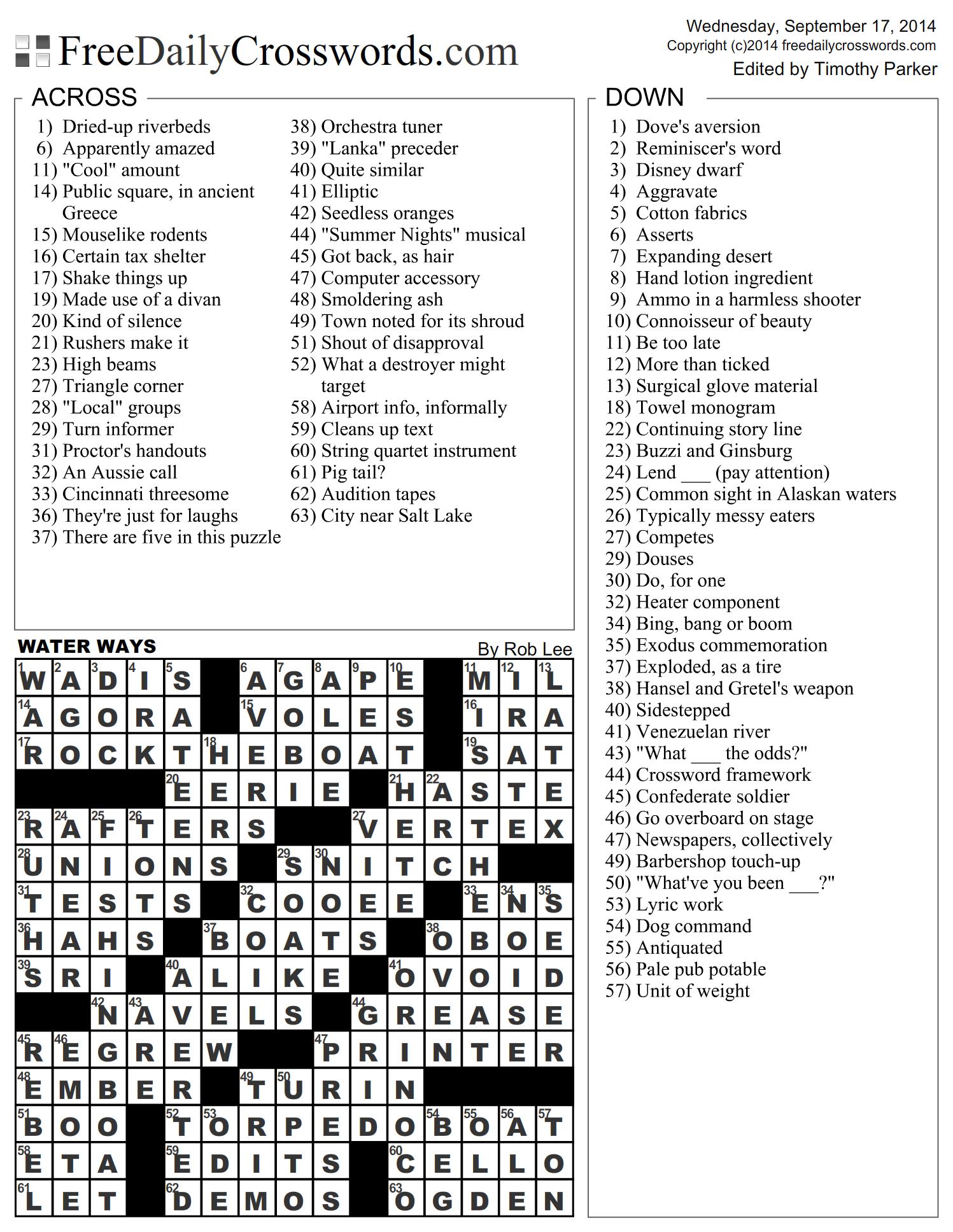 ALLYN’S Visit TheSentinel Servingyourbuildingneeds since1969 BESTLOOK 517 N Mill St, Goldendale 509.773.4796 Paint L - Primer in 1 PAINTS I ULTRA WHITE B- 30.7FIOZ 1%US 909ml at BUILDING CENTER SSKI-3 www.GoldendaleSentinel.com ACROSS DOWN I) Dried-upriverbeds 6) Apparentlyamazed II)"Cool"amount 14)Publicsquare inancient Greece 15)Mouselikerodents 16)Certain taxshelter 17)Shakethings up 19)Madeuseofadivan 20)Kindofsilence 21) Rushersmakeit 23)High beams 27)Trianglecorner 28)"Local”groups 29)Turn informer 31)Proctor'shandouts 32)An Aussiecall 33)Cincinnati threesome 36)They'rejustforlaughs 37)Therearefivein thispuzzle 38)Orchestratuner 39)"Lanka"preceder 40)Quitesimilar 41)Elliptic 42)Seedlessoranges 44)"SummerNights"musical 45)Got back,ashair 47)Computeraccessory 48)Smolderingash 49)Town noted foritsshroud 51)Shoutofdisapproval 52)Whatadestroyermight target 58)Airportinfo,informally 59)Cleansuptext 60)Stringquartetinstalment 61)Pigtail? 62)Audition tapes 63)City nearSaltLake 1) Dove'saversion 2) Reminiscer'sword 3) Disneydwarf 4) Aggravate 5) Cotton fabrics 6) Asserts 7) Expandingdesert 8) Hand lotion ingredient 9) Ammoina harmlessshooter 10)Connoisseurofbeauty 11) Betoolate 12)Morethan ticked 13)Surgicalglovematerial 18)Towel monogram 22)Continuingstory line 23)BuzziandGinsburg 24) Lend 25)Commonsightin Alaskan waters 26)Typically messyeaters 27)Competes 29)Douses 30)Do,forone 32)Heatercomponent 34)Bing bangorboom 35)Exoduscommemoration 37)Exploded asa tire 38)Hansel andGretel'sweapon 40)Sidestepped 41)Venezuelan river 43)"What 44)Crossword framework 45)Confederatesoldier 46)Gooverboard onstage 47)Newspapers,collectively 49) Barbershoptouch-up 50)"What'veyou been 53) Lyricwork 54)Dogcommand 55)Antiquated 56)Palepubpotable 57)Unitofweight Like ^ TheSentinel onFacebook fj (payattention) SUDOKU Calltoday and receivea FREE SHOWER PACKAGE PLUS $1600 OFF WATER WAYS SAF WALK INTUB 1-855-576-5653 Mr Withpurchaseof SafeStepWalk-InTub Not applicable with anypreviouswalk-intubpurchase Offeravailable whilesupplieslejst Nocashvalue Mustpresentofferattimeof purchase CSLB1082165 NSCB0082999 0083445 3 1 9 5 theodds?" 1 6 3 8 7 5 2 3 4 4 2 9 8 1 45 46 \T 6 8 3 7 48 9 50 8 7 51 58 FreeDailyCrosswords Copyright©FreeDailyCrosswordscom EditedbyTimothyParker 1 3 2 9 61 ©StatePointMedia