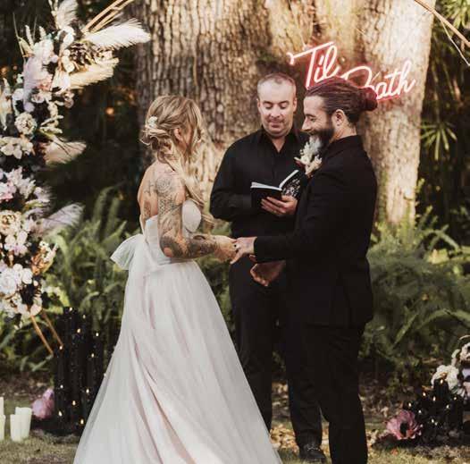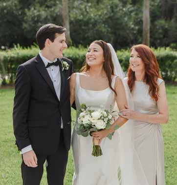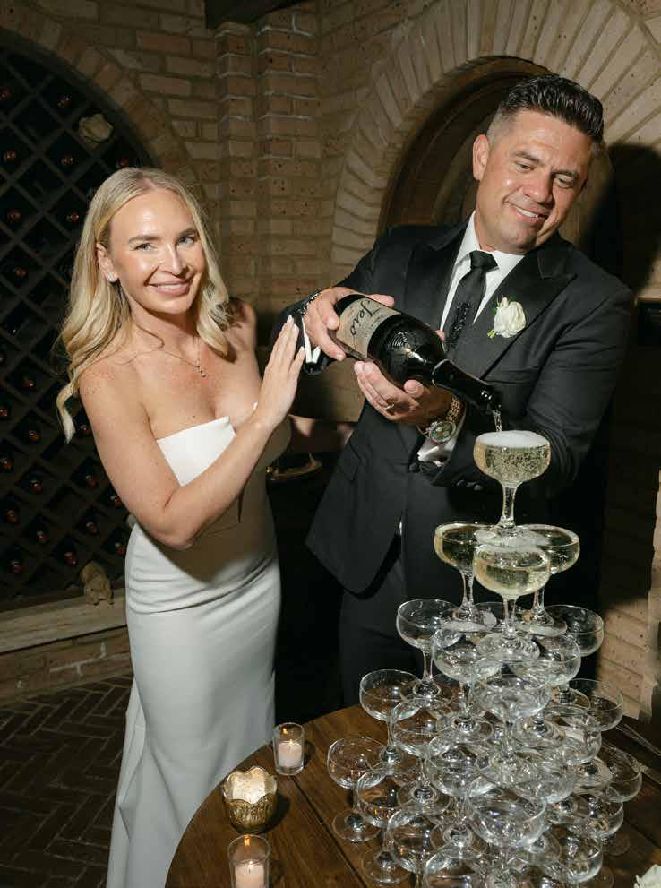 “Our vision for the wedding evolved over the course of our twoyear engagement. We initially planned to elope in Cinque Terre, Italy. As the news began to settle with our families, our small elopement blossomed into what we lovingly call our Italian Backyard Wedding,” Madison explains.